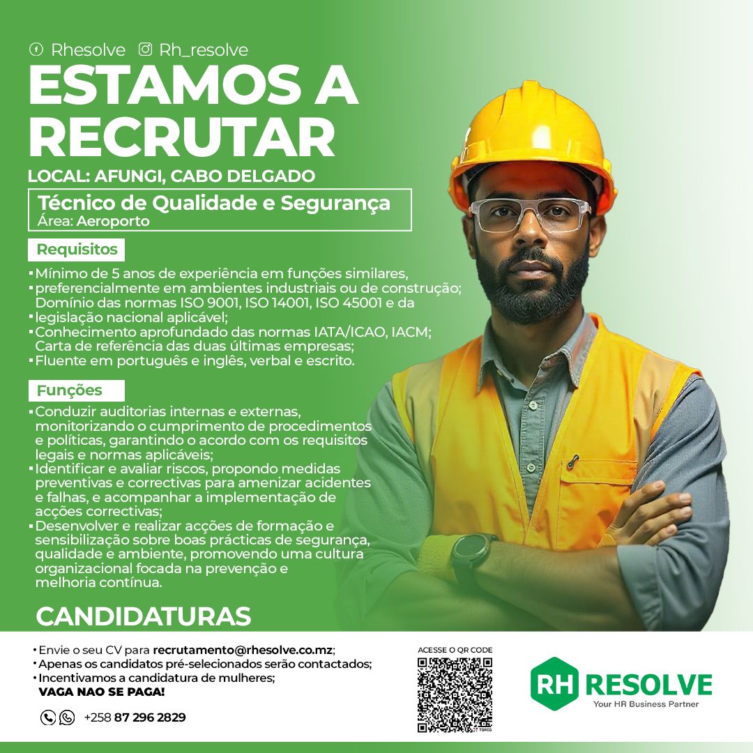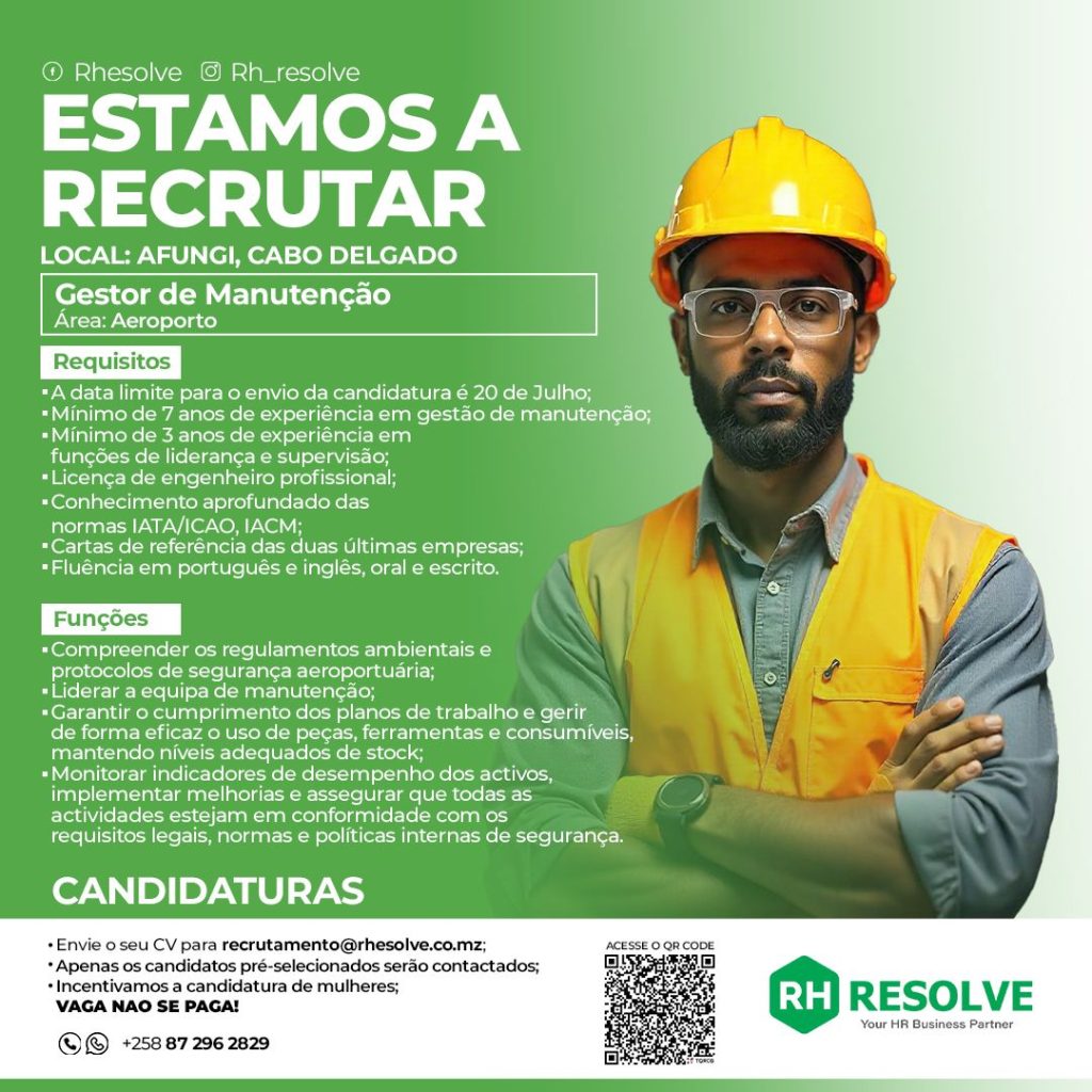 Para se candidatar a esta vaga envie seus detalhes por e-mail para recrutamento@rhesolve.co.mz