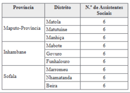 O Governo de Mocambique (GdM), atraves do Ministerio do Trabalho, Género, e Acção Social (MTGAS) recebeu um donativo da Associação Internacional para o Desenvolvimento (IDA) do Banco Mundial para suportar a implementação do Projecto de Capacitação para Melhorar a Resposta à Violência Baseada no Género (VBG) e pretende aplicar parte dos recursos para a contratação de Assistentes Sociais.